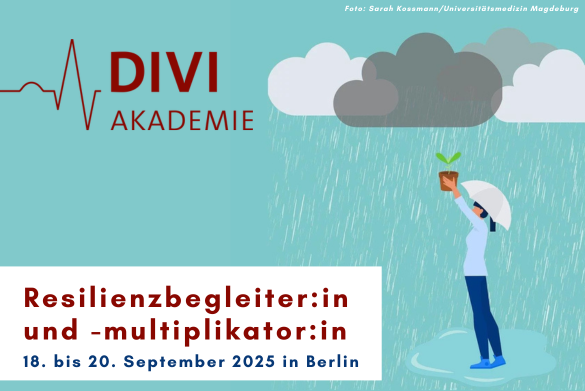 Zur Erinnerung: Vom 18. bis 20. September 2025 bietet die DIVI-Akademie in Berlin wieder die Ausbildung zum/ zur Resilienzbegleiter:in und -multiplikator:in an. Letzte Plätze für spontan Interessierte sind noch frei. DIVI-Mitglieder aus dem Bereich Pflege- und Therapie dürfen von extra-rabattierten Teilnahmegebühren profitieren.